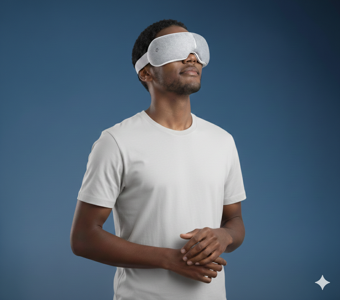 Strong air + Hot compress + Music. Best for heavy eye strain.